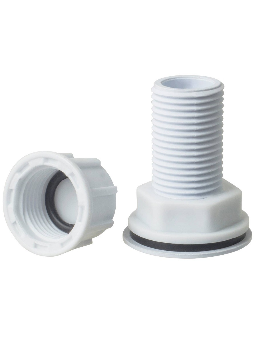 Врезка изготовлена из прочного пластика и предназначена для присоединения труб водоснабжения к емкости. Герметичная врезка в бак, созданная с помощью отвода, имеет наружную резьбу и зажимную гайку с прокладкой для герметичности соединения.