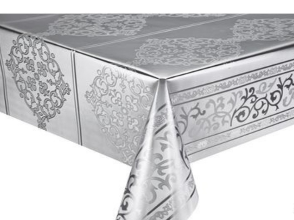 Клеенка из плотного 100% ПВХ, декорированная тиснением с обеих сторон, без основы золото/серебро.