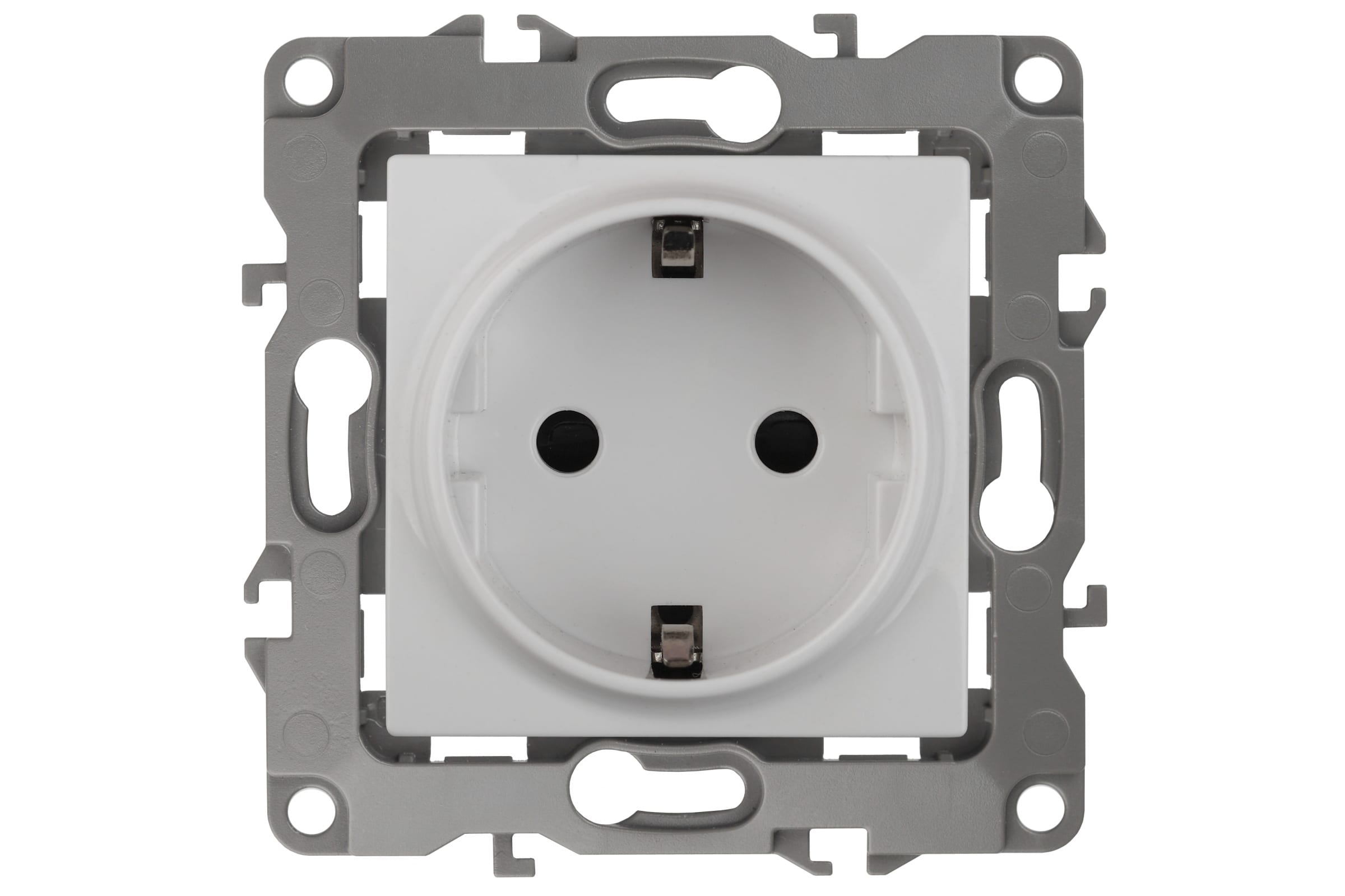 1193566 Механизм розетки 1-м СП Эра12 12-2102-01 16А IP20 16AX 250В 2P+E Schuko защ. шторки бел. Эра