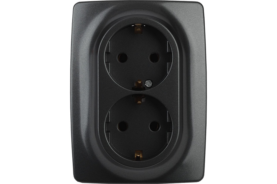 1231753 Розетка 2-м СП Эра12 12-2106-05 16А IP20 16AX 250В 2х2P+E Schuko антрацит Эра Б0031232