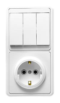 Блок комбинированный БКВР-033, выключатель (3 клавиши)+розетка, белый