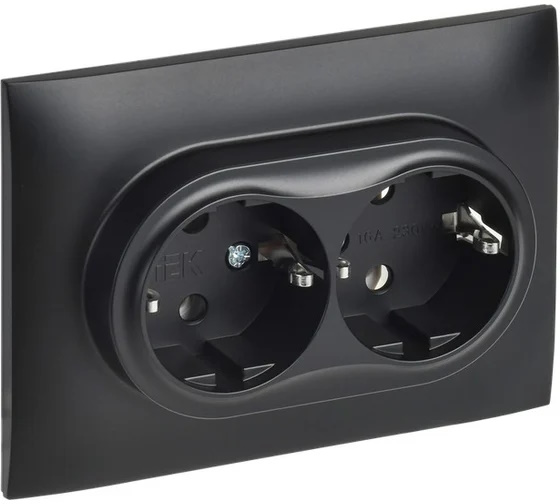 Розетка 2-м SKANDY 16А с заземл. без защ. шторок в сборе SK-R08Bl черн. IEK