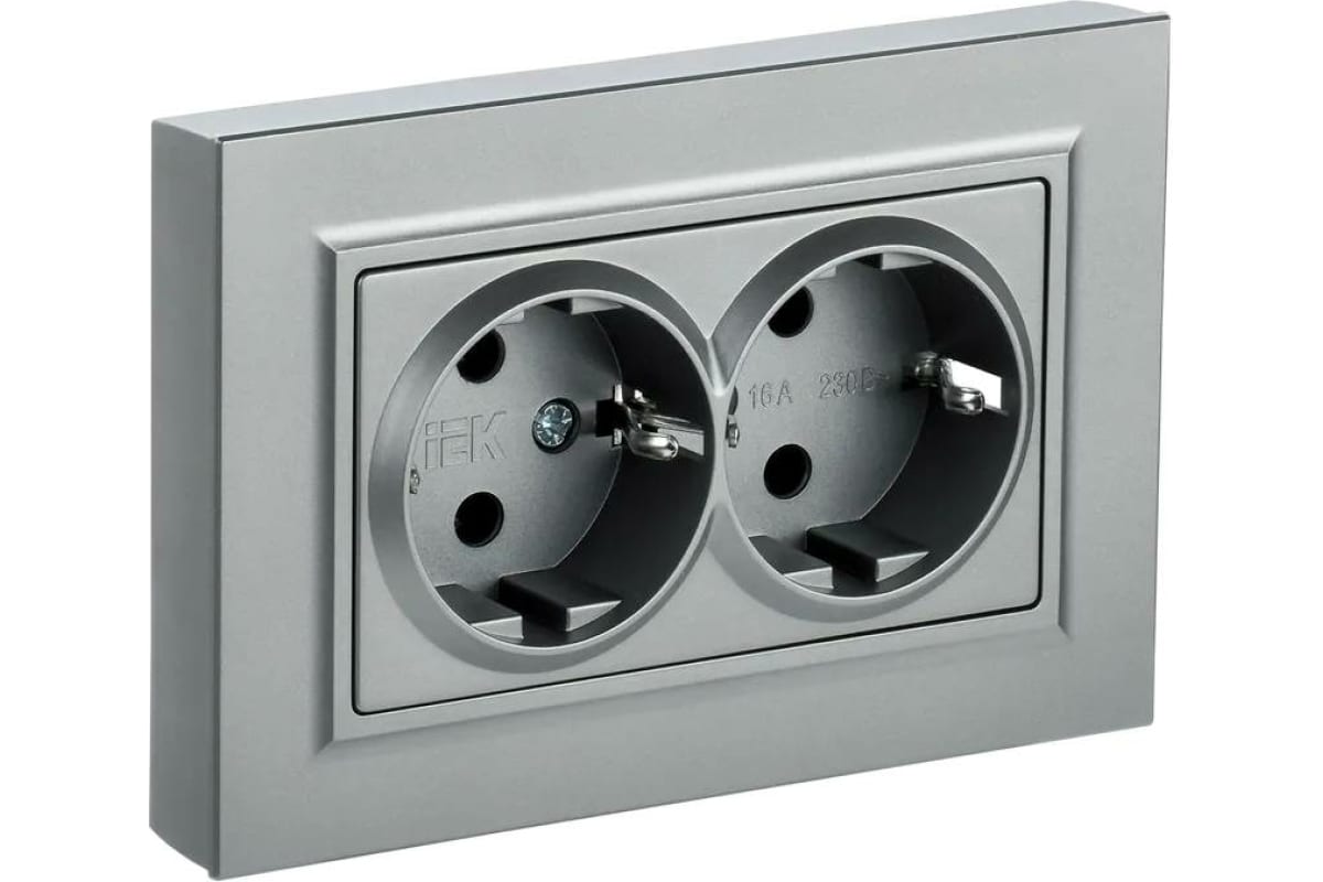 Розетка IEK 2-м СП BRITE РС12-3-БрА 16А в сборе с заземл. без защ. шторок алюм. BR-R21-16-K4