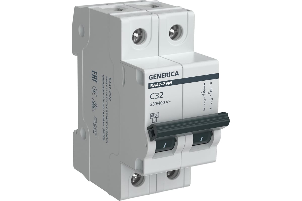 Выключатель автоматический модульный GENERICA 2п C 32А 4.5кА ВА47-29М MVA21-2-032-C-G
