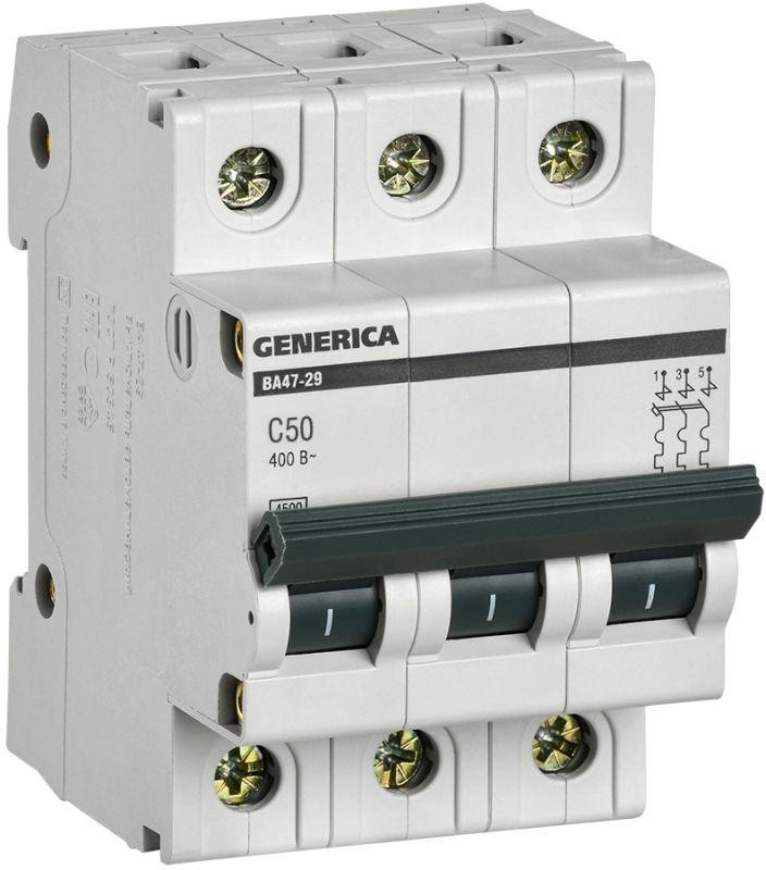 Выключатель автоматический модульный GENERICA 3п C 50А 4.5кА ВА47-29 MVA25-3-050-C