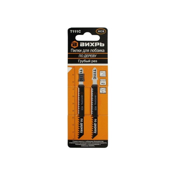 Пилки для лобзика Вихрь Т111C по дереву,грубый рез 100х75мм (2 шт) 73/10/5/7