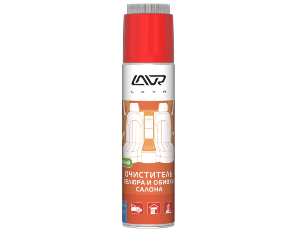 Пенный очиститель велюра и обивки салона Lavr 650 мл используют для эффективного удаления сложных загрязнений от еды и напитков с пластиковых и виниловых элементов отделки.