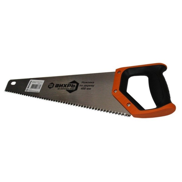 Ножовка 400 мм 3D заточка 2 компонентная рукоятка Вихрь 73/2/4/5 - практичный и удобный инструмент, который используется при распиловке деревянных заготовок.