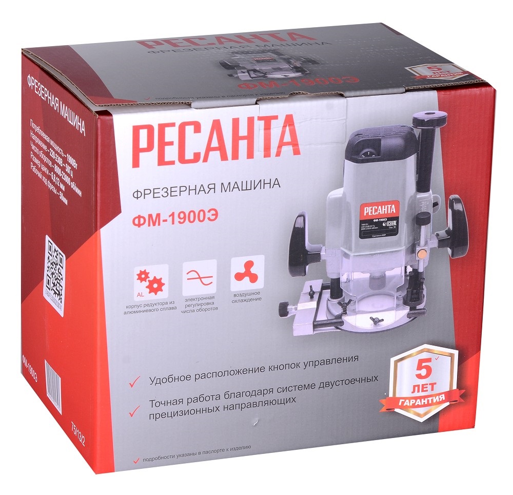 Фрезерная машина Ресанта ФМ-1900Э используется для выпиливания канавок, кромок, удлиненных отверстий в дереве, для легких строительных материалов.