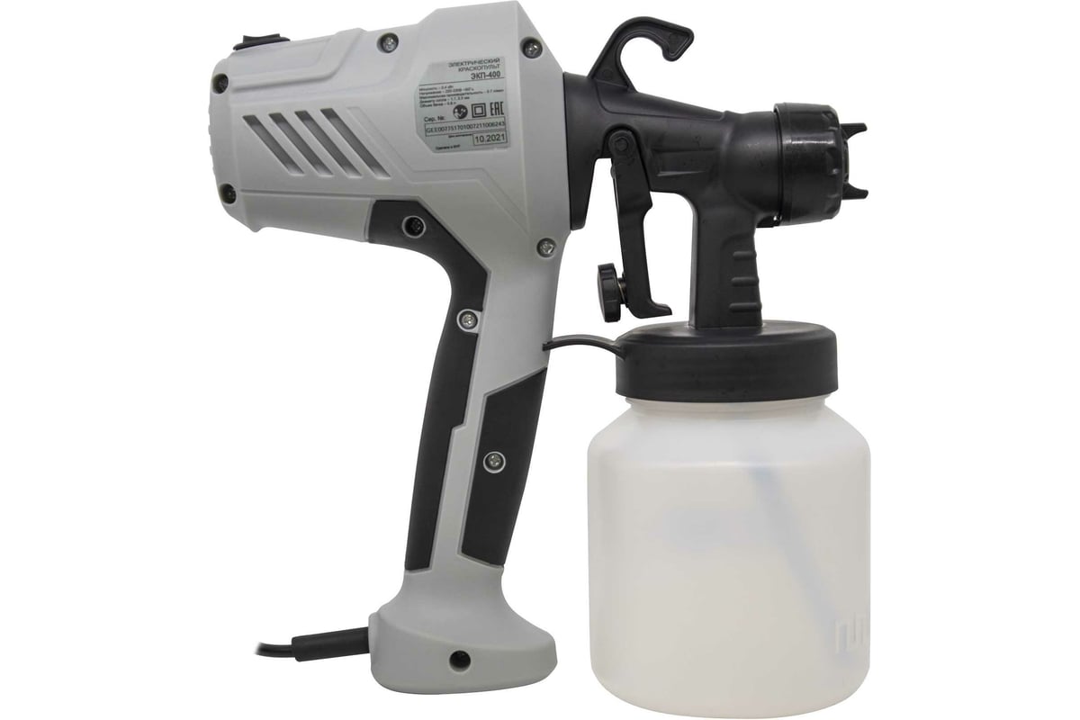 Краскораспылитель электрический Ресанта ЭКП-400 предназначен для нанесения красок, лаков и других растворимых материалов соответствующей вязкости на различные поверхности.