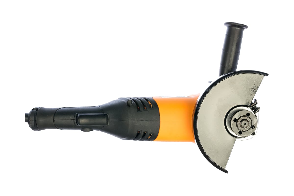 Защита от случайного нажатия делает использование болгарки безопасной. На корпусе расположена специальная кнопка блокировки.