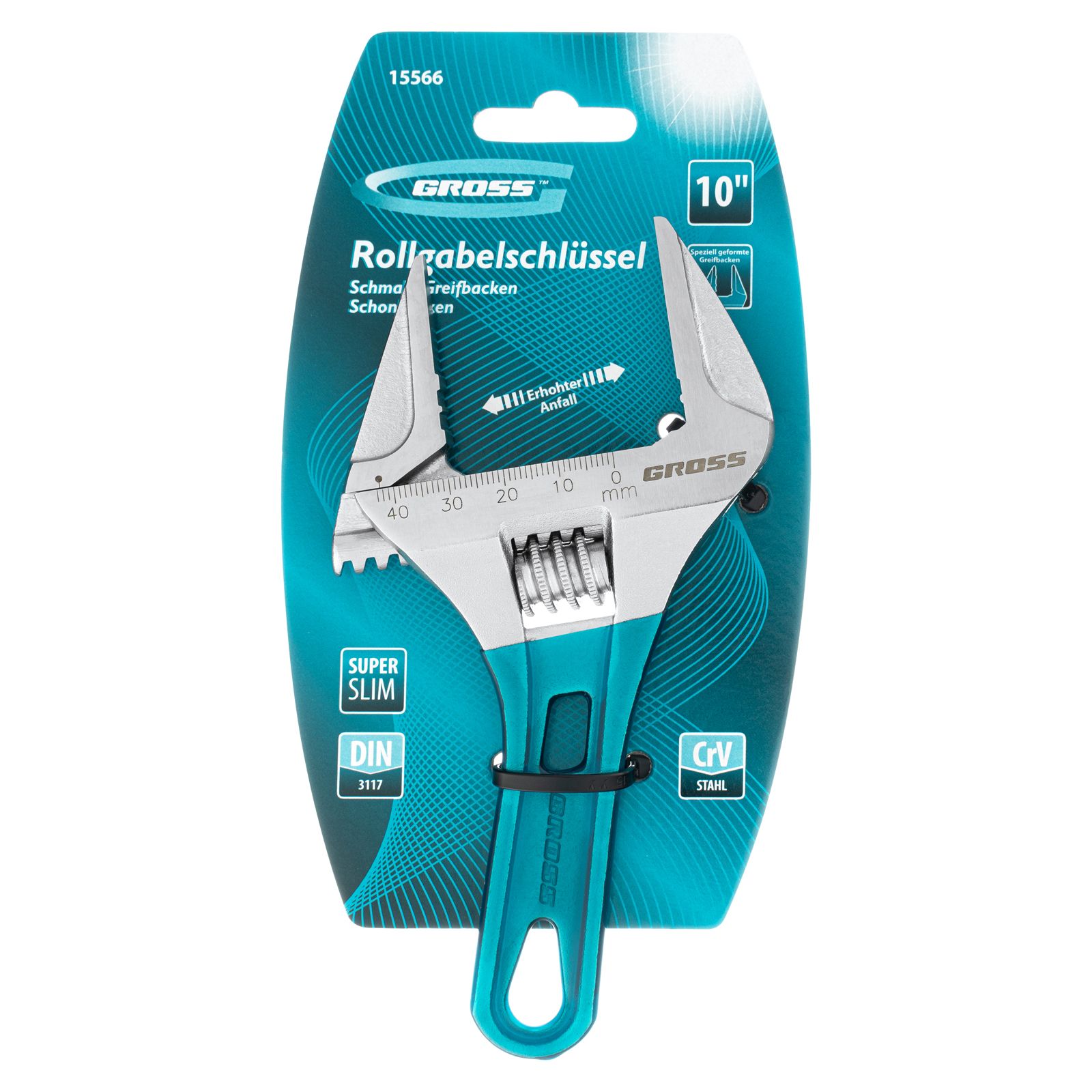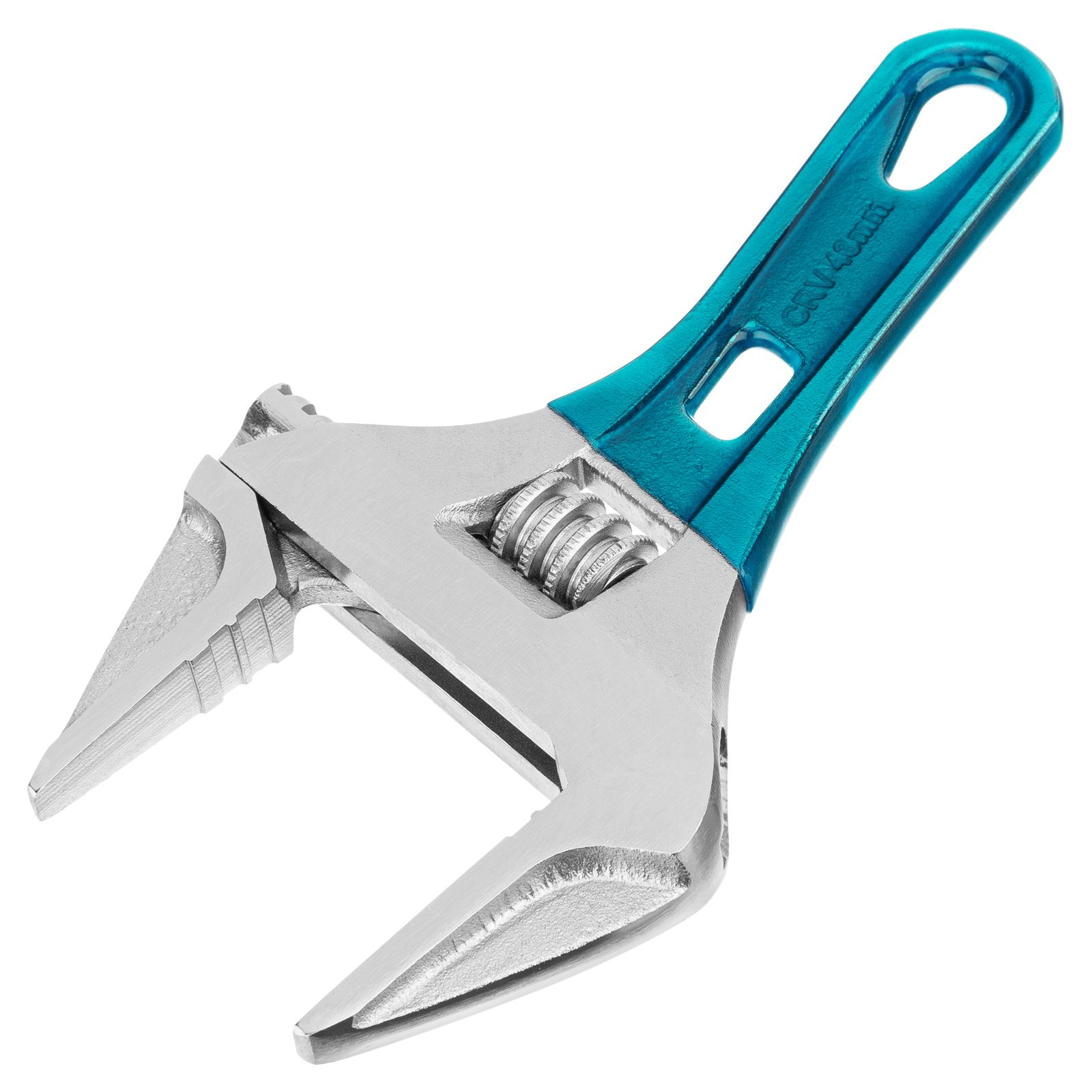 Разводной ключ Gross 15566 длиной 160 мм, из стали CrV, с укороченной ручкой и диапазоном раскрытия зева до 43 мм, подходит для работы как с мелкими, так и с крупными крепежными элементами. Губки раскрываются на 50% больше, чем у стандартных ключей. Ребристая рабочая поверхность губок обеспечивает надежный захват деталей и повышает точность работы.