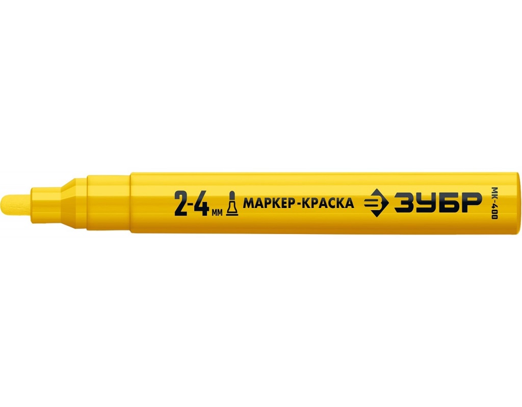 Маркер-краска ЗУБР МК-400 круглый наконечник, 2-4 мм, желтый наполнен жидкой быстросохнущей краской, подходит практически для любой поверхности.