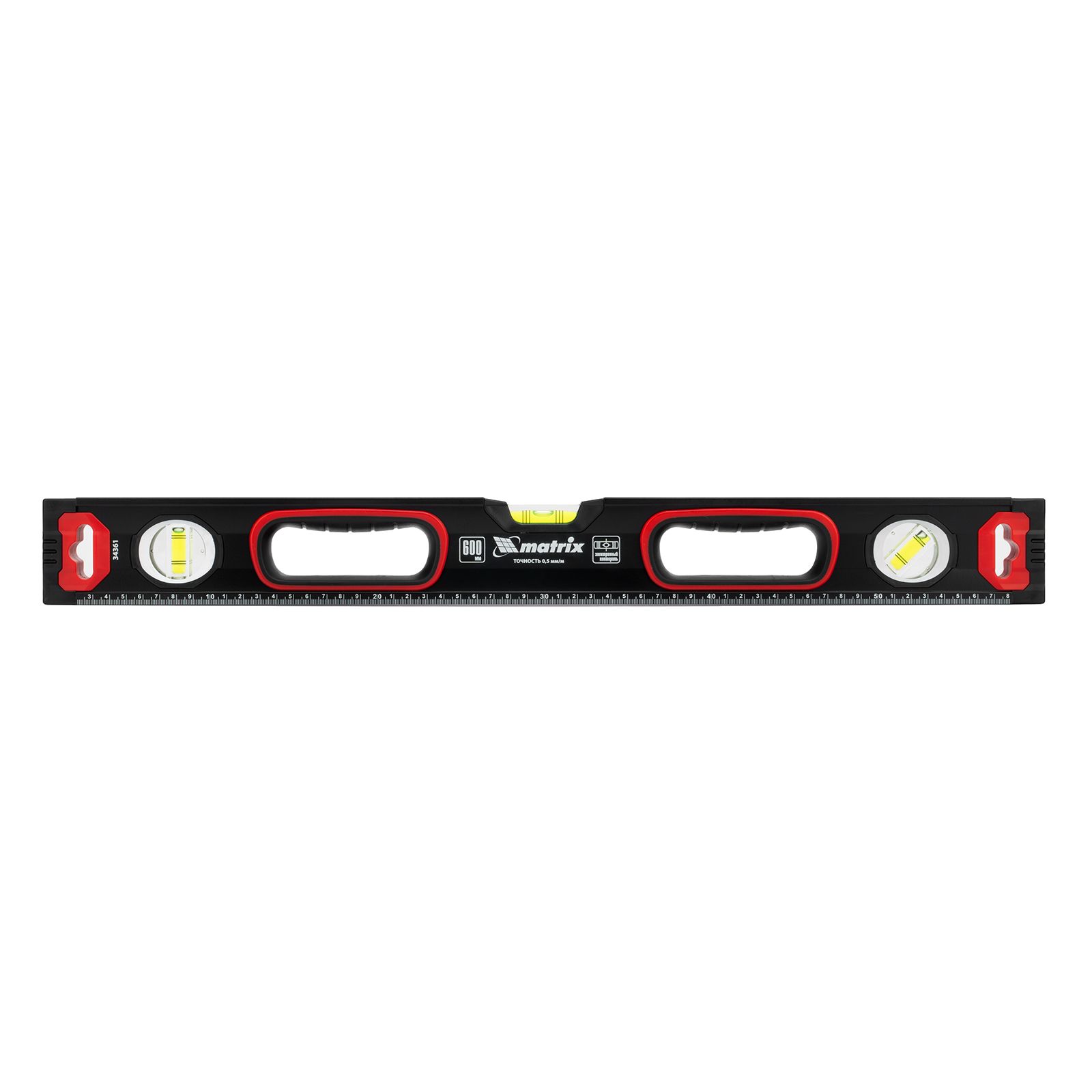Уровень Matrix алюминиевый, усиленный, фрезерованный, 3 глазка, 600 мм