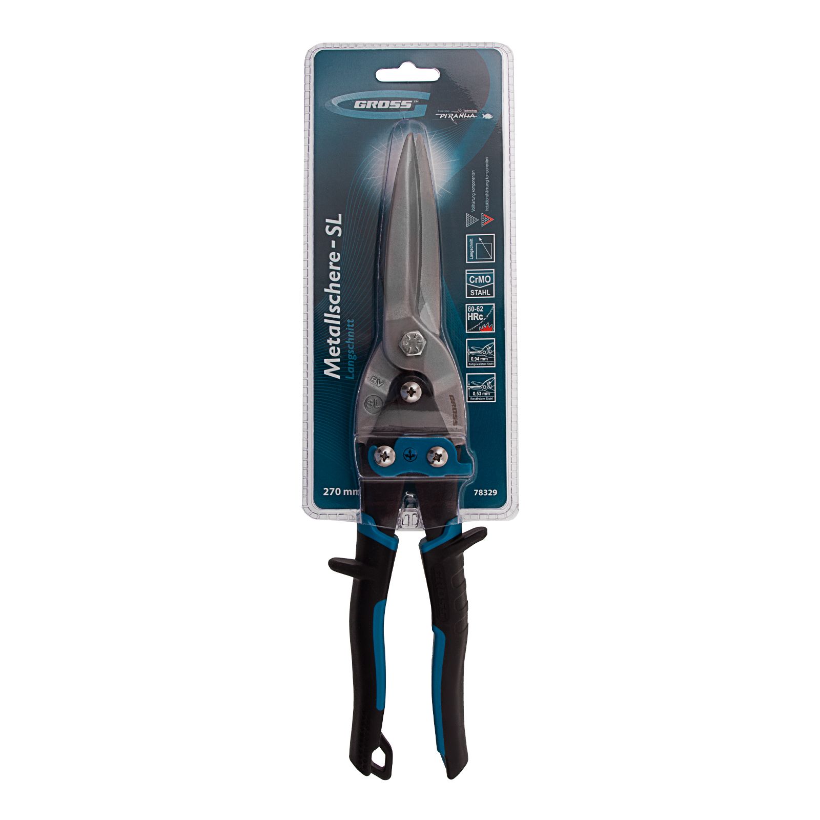 Ножницы по металлу Gross "PIRANHA", 270мм, прямой проходной рез,сталь-СrMo,двухкомп.рук-ки