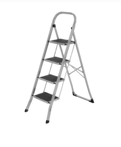 Прочная конструкция — стремянка изготовлена из стального профиля и снабжена надежны офиля и снабжена надежным механизмом раскладывания, поэтому выдерживает нагрузку до 150 кг