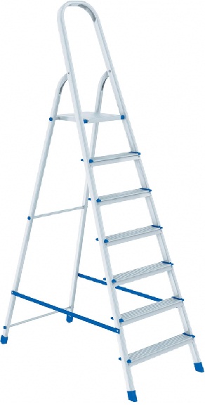 Алюминиевая стремянка СИБРТЕХ 7 ступеней используется для осуществления различных работ на высоте, например, для внутренней отделки помещений или сбора плодов с деревьев в саду и пр.