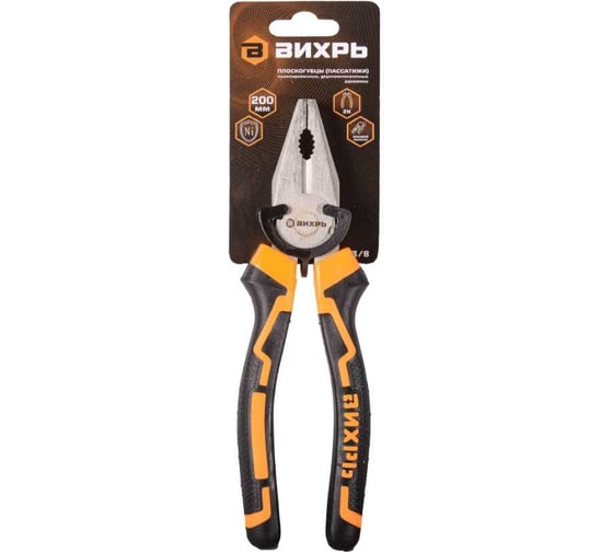 Плоскогубцы 200мм никелированные, двухкомпонентные рукоятки Вихрь - удобный инструмент, при помощи которого можно выполнять большое количество разнообразных операций.
