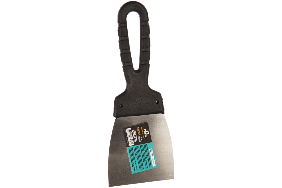 Шпатель (стальное лезвие, пластиковая ручка) 80 мм MOS используется при необходимости выравнивать глубокие выбоины и трещины в стене.