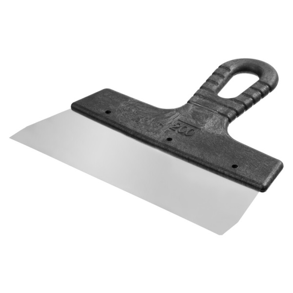 Нержавеющий фасадный шпатель СИБИН 350 мм состоит из полотна и пластиковой рукоятки.