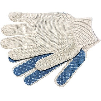 Трикотажные перчатки 67776 с ПВХ-покрытием «Шахматный облив», 10 класса вязки, защищают руки от царапин, порезов, ссадин, мозолей и загрязнений. Тонкая пряжа обеспечивает пальцам чувствительность, поэтому перчатки подходят для выполнения точных работ. Благодаря ПВХ-покрытию ладонной части инструменты не выскальзывают из рук. Перчатки используют в строительстве, на производстве, во время ремонта помещений и обслуживания автомобилей. Пригодятся они и в хозяйстве.