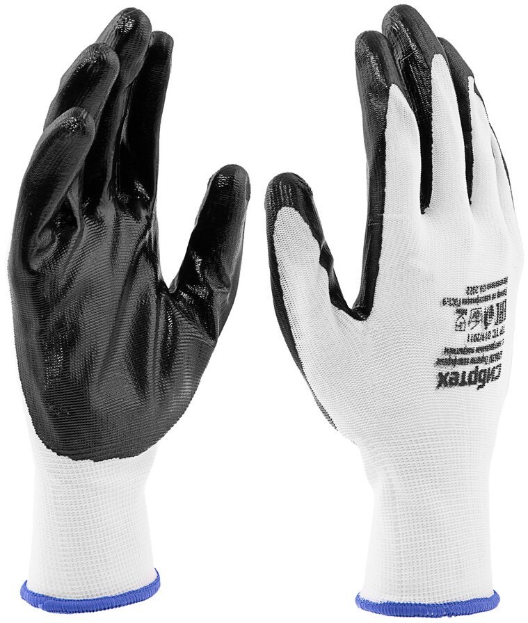 Полиэфирные перчатки Сибртех с нитрильным покрытием, предназначены для защиты рук от механических воздействий и общепроизводственных загрязнений при выполнении хозяйственных, ремонтных, строительных работПреимуществаПерчатки изготовлены из полиэфирной пряжи, обладающей высокой прочностью на разрыв и устойчивостью к истиранию, поэтому прослужат долго.Тонкое полотно обеспечивает тактильную чувствительность пальцев, что облегчает выполнение работ, требующих высокой точности.Нитрильное покрытие не с кользит и обеспечивает крепкий захват инструмента.Трикотажная ткань обеспечивает хороший воздухообмен, благодаря чему кожа рук дышит и не потеет.Материал перчаток не вызывает аллергии, а значит, их использование безопасно.Эластичные манжеты надежно фиксируются на запястьях, поэтому перчатки хорошо сидят на кистях рук и не сползают.Ткань перчаток приятна на ощупь, в них удобно работать.