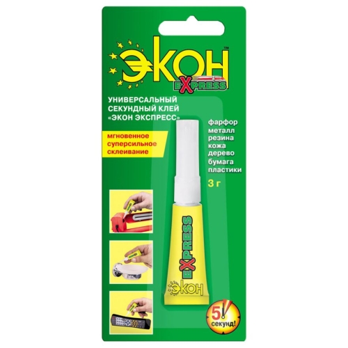 Формула нового секундного клея ЭКОН обеспечивает мгновенное соединение материалов, которое сохраняет свою прочность в течение длительного времени.