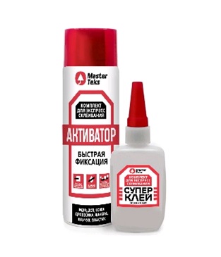 Супер-клей комплект MasterTeks экспресс склеивания прозрачный 200гр.+5гр. /24/