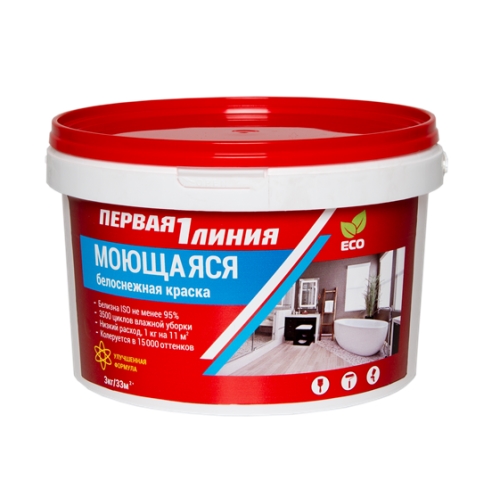 Краска "Первая линия" акриловая, моющаяся, белоснежная 14,0кг