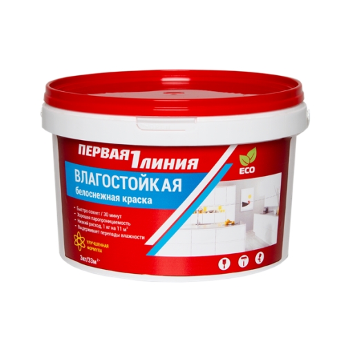 Краска "Первая линия" акриловая, влагостойкая, белоснежная 14,0кг