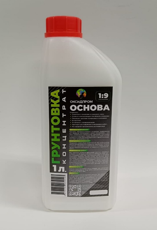 Грунтовка «Оксидпром- Основа» концентрат предназначена для обработки впитывающих, сильно впитывающих - всех типов минеральных поверхностей, цементных, известковых и гипсовых штукатурок, стяжек, бетона, всех видов кирпича, природного камня, древесностружечных и древесноволокнистых плит, гипсокартона и т.п.