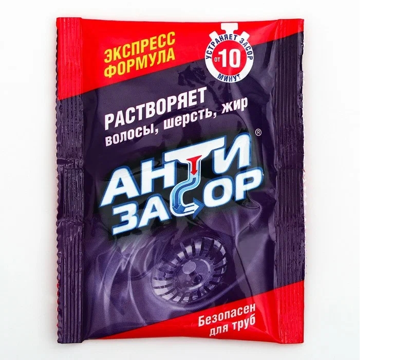 Средство АНТИЗАСОР гранулы для удаления засора в трубах, 70 гр, ЭКСПРЕСС