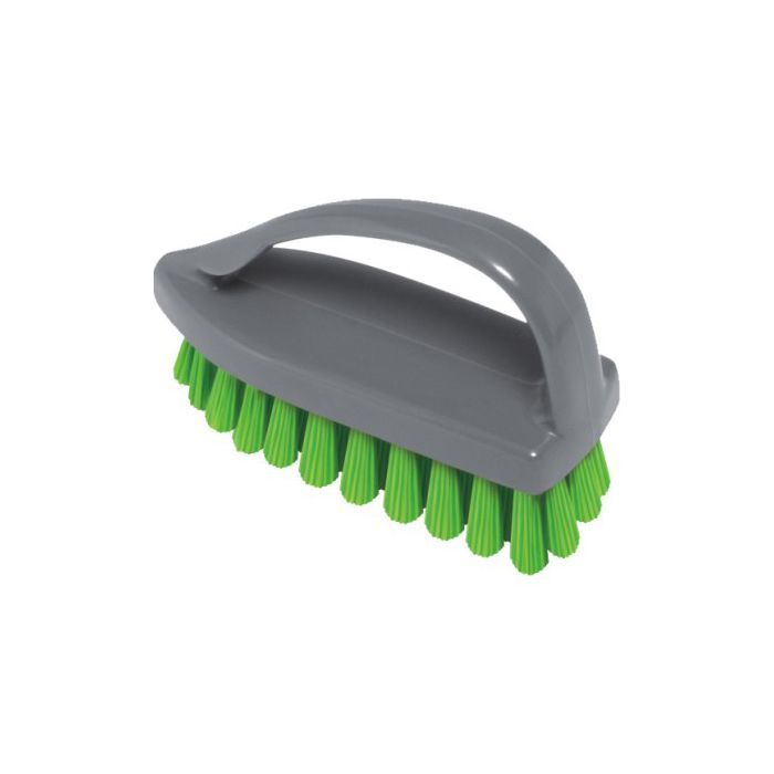 Универсальная щетка-утюжок с твердой щетиной. Удобна в использовании. Очень прочная. Отлично подходит для чистки ковров, обивки мебели из жесткой ткани, мытья ванной и раковины.