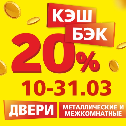 01.03.2026Только с 10 по 31 марта при покупке металлических и межкомнатных дверей начислим кэшбэк 20%