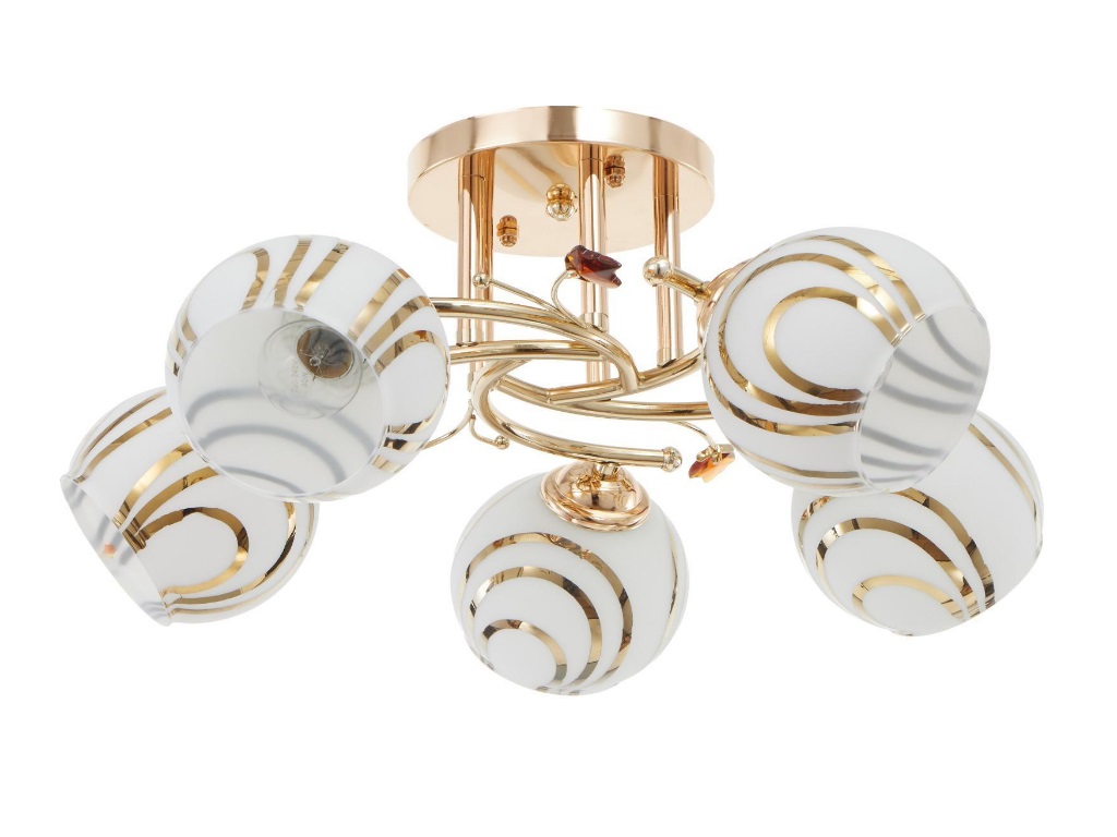 Страна производитель:Китай МатериалМеталл, стекло Вид лампыНакаливания Количество ламп5 СтильЭконом ЦокольE27 Площадь освещения, м²10 Мощность на цоколь, Вт40 Лампа в комплектеНет Материал основанияМеталл Цвет основанияЗолото Тип рассеивателяПлафон Температурное ограничениеНет Тип крепленияПотолочный Цвет рассеивателяСветлые тона Вид декораБез декора Материал рассеивателяСтекло Управление светильникомБез пульта ьникомБез пульта