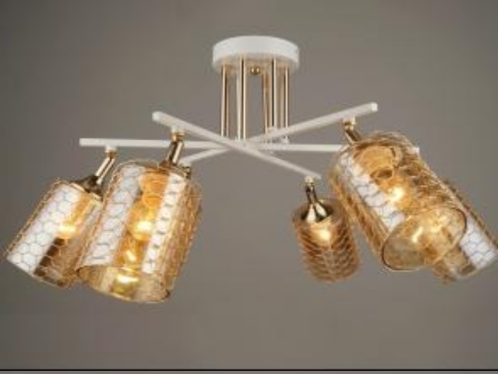 Вид ламп: Накаливания Высота: 29,5 см. Диаметр: 72,5 см. Допустимая мощность лампы: 40 W Количество ламп: 6 шт. Материал каркаса: Металл Материал плафона: Стекло Мощность: 40 W Наличие пульта управления: Нет Напряжение: 220 V Питание: 220 Площадь освещения: 12 кв.м. Страна-изготовитель: Китай Тип изделия: Потолочный Тип цоколя: E27 Цвет каркаса: Белый + Золото Цвет стекла: Коричневый
