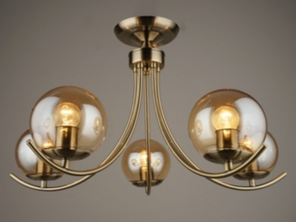 Тип изделия: Потолочный Высота: 36 см. Диаметр: 64 см. Тип цоколя: E27 Площадь освещения: 10 кв.м. Допустимая мощность лампы: 40 W Количество ламп: 5 шт. Материал каркаса: Металл Материал плафона: Стекло Цвет каркаса: Бронзовый Цвет стекла: Шампань