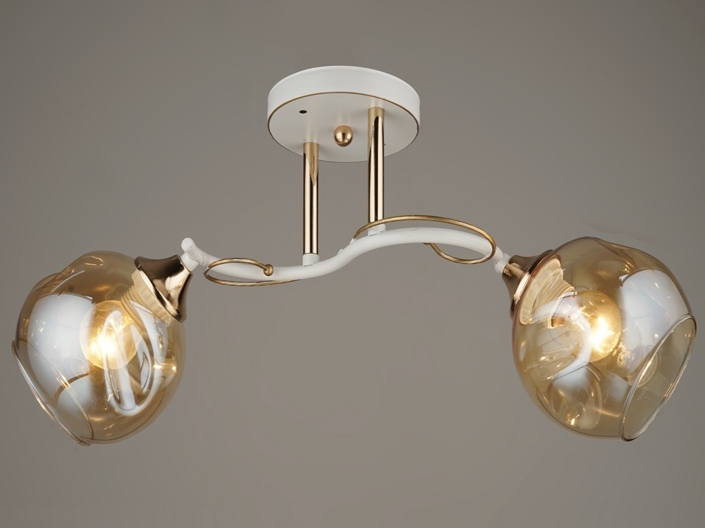 Тип изделия Потолочный Цвет каркаса Золотой+Белый Ширина 11 см. Длина 48 см. Высота 23 см. Площадь освещения 4 кв.м. Цвет стекла Золотой Допустимая мощность лампы 40 W Количество ламп 2 шт. Материал каркаса Металл Материал плафона Стекло Тип цоколя E27