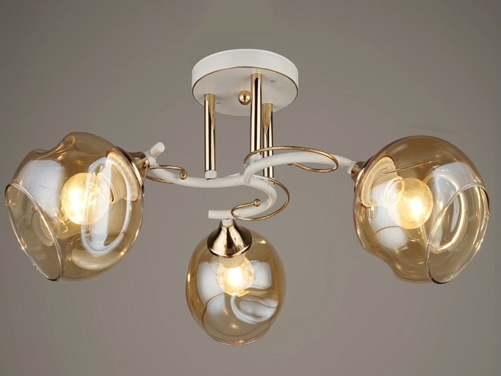 Тип изделия Потолочный Цвет каркаса Золотой+Белый Диаметр 52 см. Площадь освещения 6 кв.м. Цвет стекла Золотой Допустимая мощность лампы 40 W Количество ламп 3 шт. Материал каркаса Металл Материал плафона Стекло Тип цоколя E27