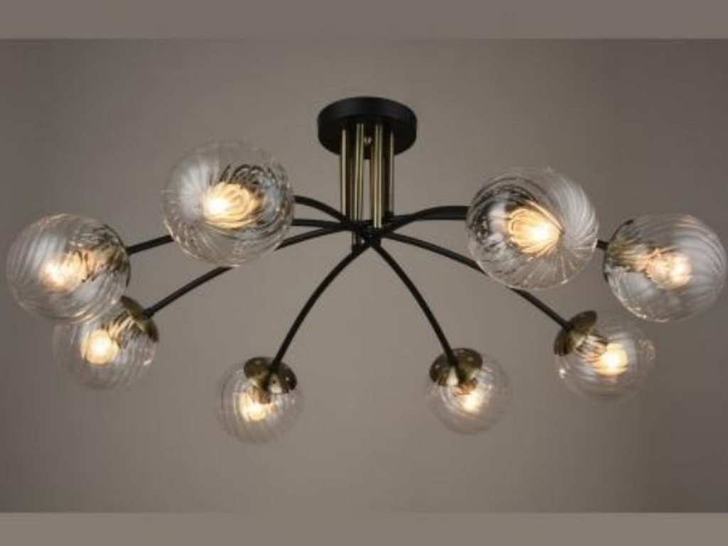 Тип изделия Потолочный Цвет каркаса Черный Высота 38 см. Диаметр 85 см. Площадь освещения 20-24 кв.м. Цвет стекла Белый Допустимая мощность лампы 40 W Количество ламп 8 шт. Материал каркаса Металл Материал плафона Стекло Тип цоколя E27