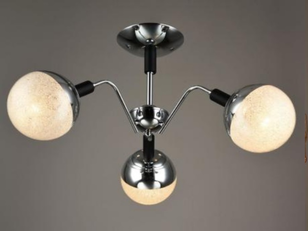 Цвет каркаса Черный + Хромовый Высота 27 см. Диаметр 63 см. Площадь освещения 6-9 кв.м. Цвет стекла Белый с хромом Допустимая мощность лампы 40 W Количество ламп 3 шт. Материал каркаса Металл Материал плафона Стекло Тип цоколя E27