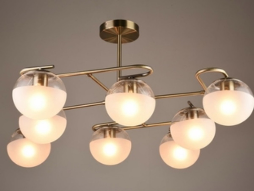 Тип изделия: Потолочный Высота: 40 см Тип цоколя: E27 Площадь освещения: 20-24 кв.м. Допустимая мощность лампы: 40 W Количество ламп: 8 шт. Материал каркаса: Металл Материал плафона: Стекло Цвет каркаса: Бронзовый Цвет стекла: Белый