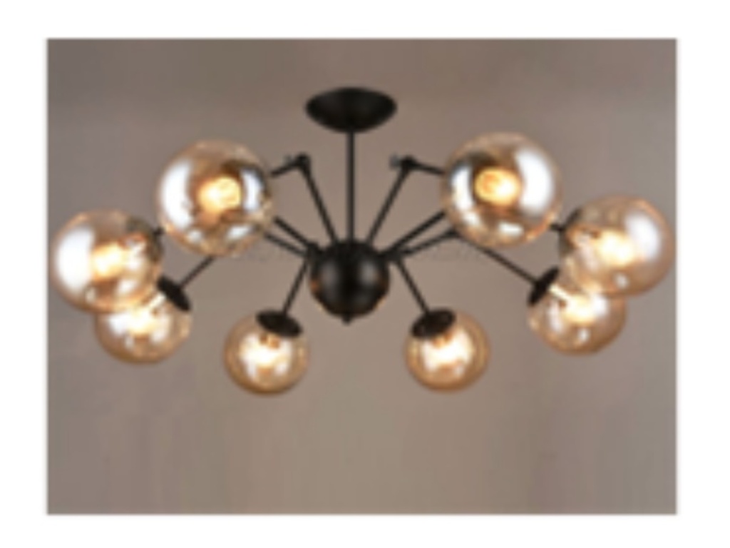 Тип изделия Потолочный Цвет каркаса Черный Материал каркаса Металл Материал плафона Стекло Тип цоколя E27 Высота 41,5 Диаметр 88 Площадь освещения 16 кв.м. Цвет стекла Шампань Допустимая мощность лампы 40 W Количество ламп 8 шт.
