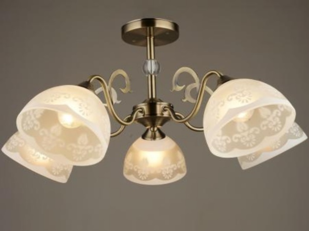 "Вид ламп: Накаливания Высота: 30,5 см. Гарантия: 24 мес. Год выпуска: 2019 Диаметр: 64,5 см. Допустимая мощность лампы: 40 W Количество ламп: 5 шт. Количество штук в заводской коробке: 4 шт. Коробка Высота: 47 см. Коробка Длина: 35 см. Коробка Ширина: 30 см. Материал каркаса: Металл Материал плафона: Стекло Мощность: 40 W Наличие пульта управления: Нет Напряжение: 220 V Питание: 220 Площадь освещения: 10 кв.м. Страна-изготовитель: Китай Тип изделия: Потолочный Тип цоколя: E27 Цвет каркаса: ь освещения: 10 кв.м.