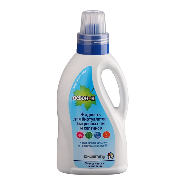 Жидкость для биотаулетов "Девон-Н" предназначена для использования в биотуалетах, туалетах "с выдвижной бадьёй" и выгребных ямах, вёдрах-туалетах, системах коттеджной канализации и пр., а также для удаления запахов от домашних животных и других неприятных запахов в жилых помещениях, салонах а/м и пр.