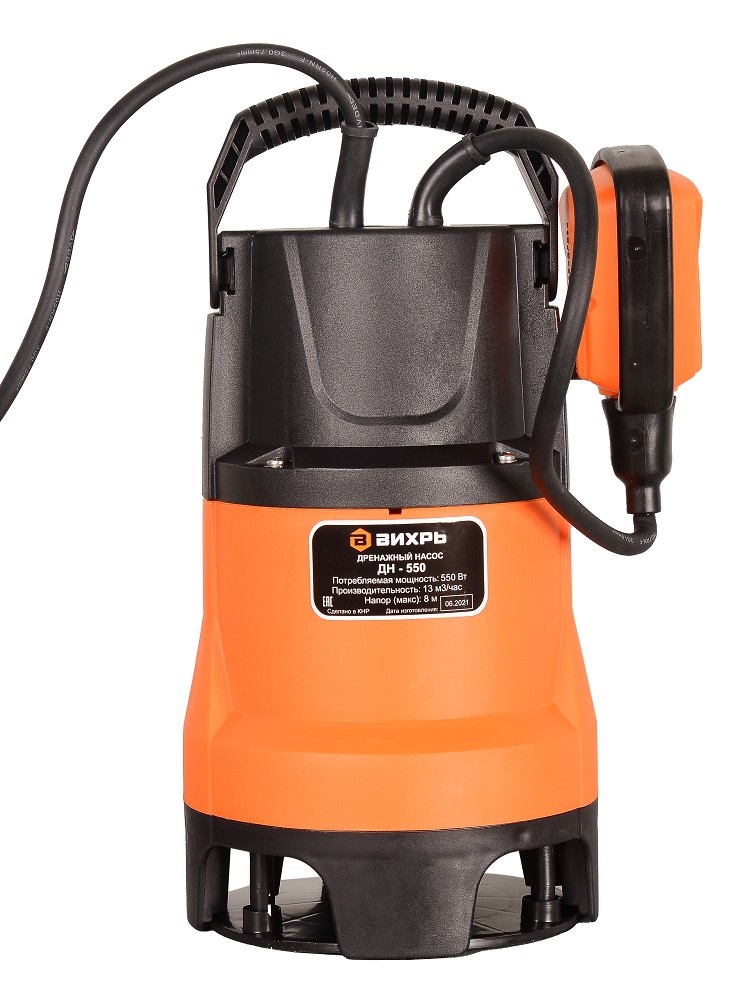 Дренажный насос Вихрь ДН-550 предназначен для осушения затопленных помещений, откачки воды из строительных котлованов и цистерн.