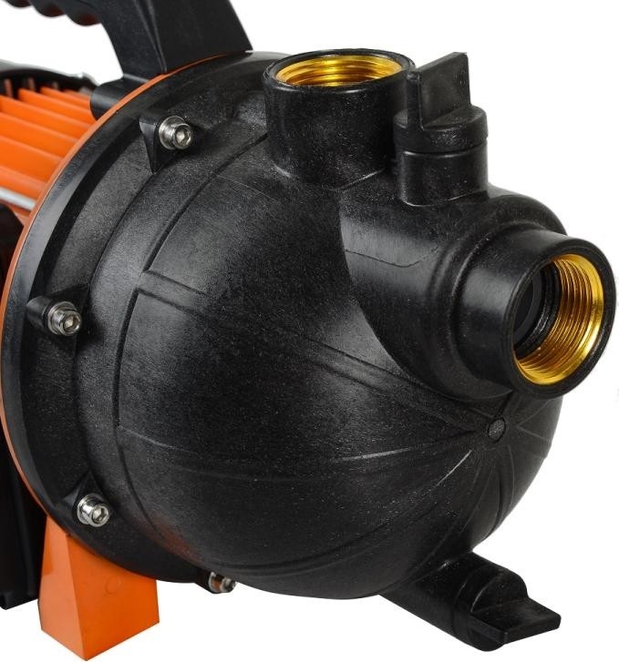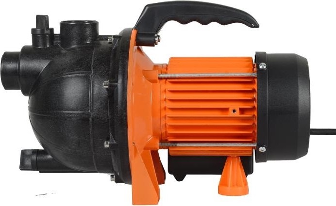 Насос имеет рукоятку - для удобного перемещения, а также ножки-основание - для устойчивого положения при работе. Корпус двигателя изготовлен из пластика.