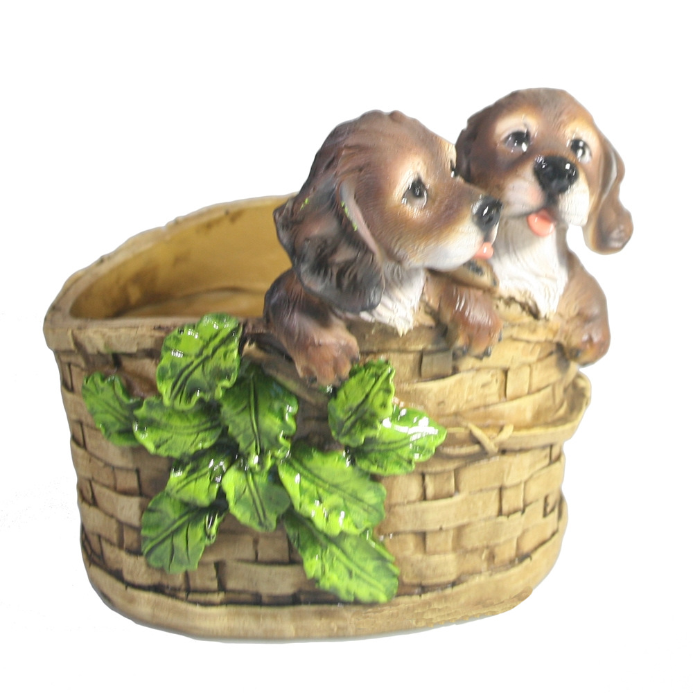 Фигура декоративная ДВА ЩЕНКА В ЛУКОШКЕ КАШПО
