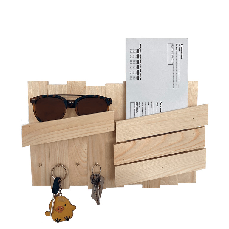 Ключница настенная открытая оснащена полкой с карманом, куда поместятся не только ключи, но и много полезных вещей