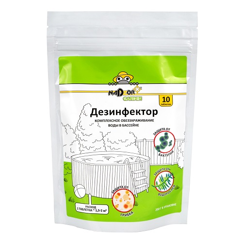 Хлорные таблетки по 20г Nadzor Garden предназначены для абсолютного обеззараживания воды в бассейнах. Разрушительно действует на вирусы, микробы, бактерии, грибки. Для применения необходимо использовать поплавок (плавующая капсула) или скриммер.Вносить средство не менее чем за 4 часа до использования бассейна. Расход:1 таблетка на 1м3